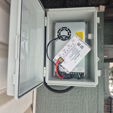 Our power box is fully weatherproof and built to withstand harsh Canadian conditions year-round. Each unit is professionally assembled and installed in a strategic, discreet location to maintain the clean appearance of your home. It can be mounted either outdoors or inside your garage, depending on your layout and preference.